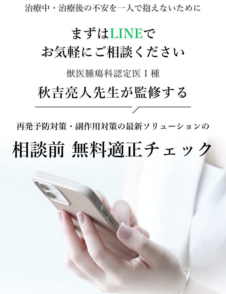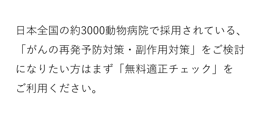 このサービスについてLINE相談前無料適正チェックは、飼い主様からご提供いただくペットの症状や状態に関する情報をもとに、獣医師または獣医療従事者が初期的な判断や健康アドバイスを行うサービスです。