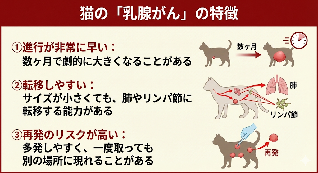 「少し様子を見ようかな」と思いたくなる気持ちもよく分かります。しかし、猫の場合、その数週間の猶予が取り返しのつかない差を生むことがあります。