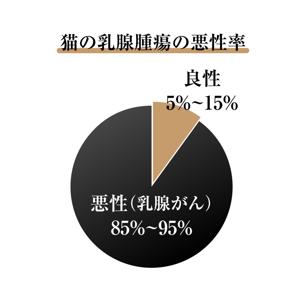 猫の乳腺腫瘍は、その85%〜95%が悪性(乳腺がん)です。